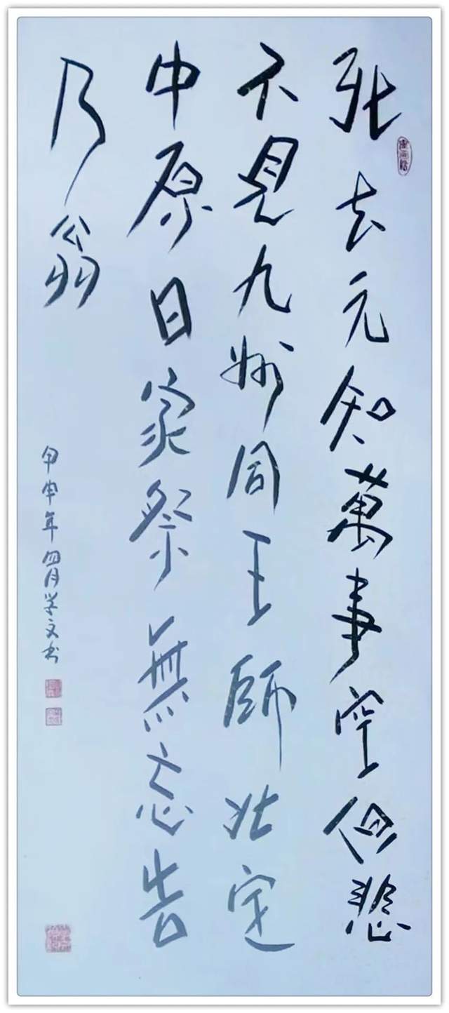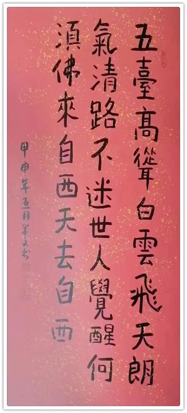 在成绩与殊荣面前,现在的学文仍一如既往的临帖、求教、探索、创作、学习、思考......学海无涯、勤奋进取、拼搏求实、在我国传统书法的沃土中,只要不断地努力,辛勤的耕耘,就一定能够收获出丰硕的成果。