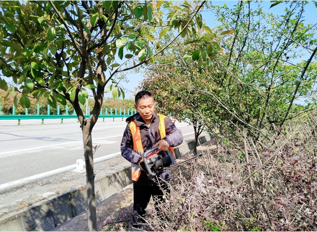 置身于路域一线,养护人员在时间紧、任务重的情况下,以连轴转、快节奏的工作状态,每天只要一上路,就立即打起十二分精神,用心用力干好所承担的工作。修剪树木、清理边沟垃圾杂物、修整边坡、修复平交道口挡墙等,养护人员用一双双粗糙的手,打理好路边的花草树木,犹如为路域环境绣上一朵朵娇艳的鲜花,换上崭新的服装。