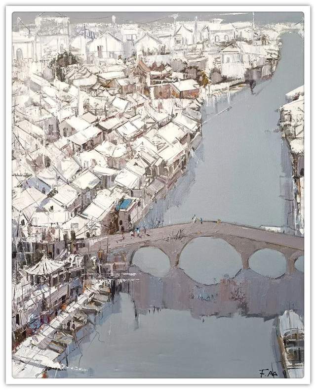 7、2022年中国美术家协会主办的“诗意江南”中国油画展,作品《梦见江南初雪·故里朱家角》入选。