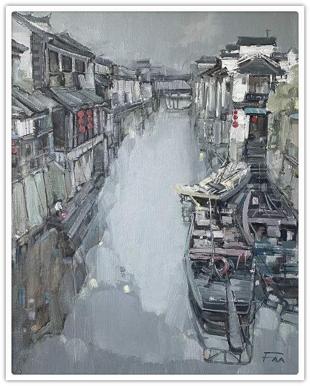 16、2021年“第三届中日书画作品交流展”,油画《情系江南》水乡系列作品三幅参展。