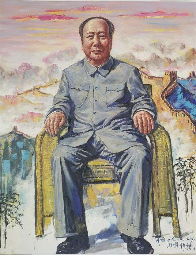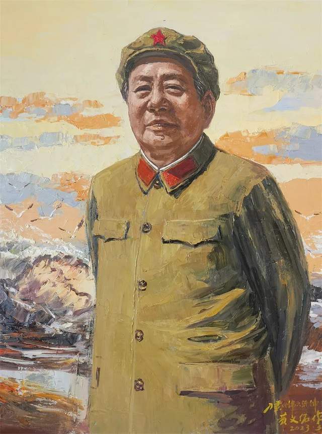 为伟大领袖毛泽东主席画肖像,是黄文佑矢志不移的艺术初心,也是他作为一名中共党员壮怀激烈的艺术心境。他的油画作品兼有笔与刀的精彩塑造,特别是刀作油画更是一家独享的艺术秘籍,其中有超写实的形神兼备,亦有东方审美的气韵生动,为领袖所作油画总是别具一格地跳脱了固定的、程式化的套路,拥有着有奇观式塑造形态,也极能接续地气的神态酝酿。让领袖肖像可以照耀在光的辉煌里,又可以拥有最有亲和力的平凡魅力。所以仰观他的领袖画像,必是令人大振心颜,并且亲切动心!黄派油画肖像作品,除了是中国精神的结晶,也是中国美学的导向!兼有艺术与学术的双重价值,奠定了黄文佑油画可以春秋相传的历史定位。