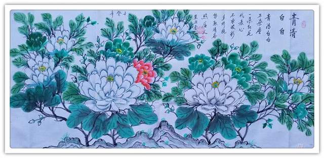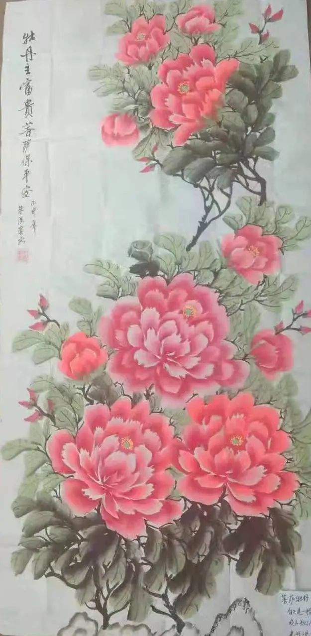 注,这两幅牡丹,只有在这个特殊的年代、背景下才素才而诞生。全国独创获金牌作品,物以稀为贵,内函丰富为高。收藏价值极高。