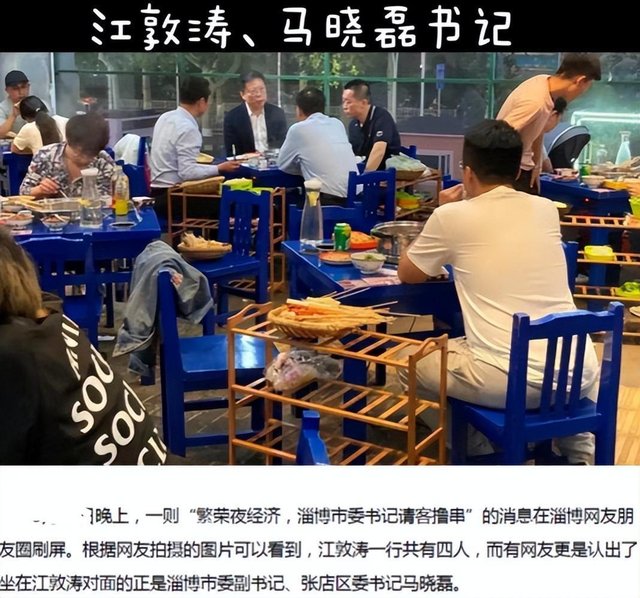 在网友拍摄的图片里,山东省淄博市委书记江敦涛一行共有四人,有网友认出,坐在江敦涛对面的是淄博市委副书记、张店区委书记马晓磊。