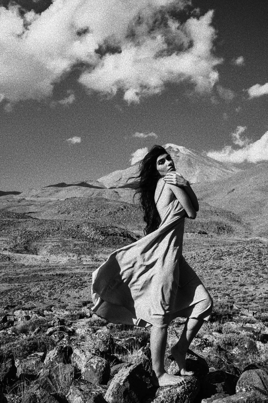 一个女子收回侧转的双臂