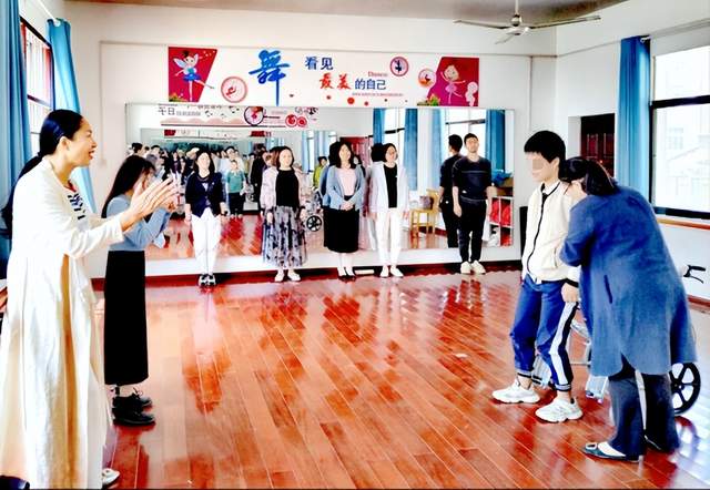 “与正常学生的教学大不相同,特教学生小到刷牙、洗脸、吃饭、喝水、穿衣,包括大小便等,都需要老师手把手的教”。涂国勇说,舞蹈排练也一样,因为有的不适应,有的哭闹不停,排队的时候也是,如果没有做到眼疾手快,排在后面的孩子就跑丢了。