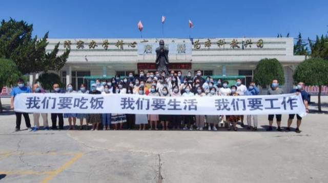 图:宝鸡园丁中学教职工在抗议