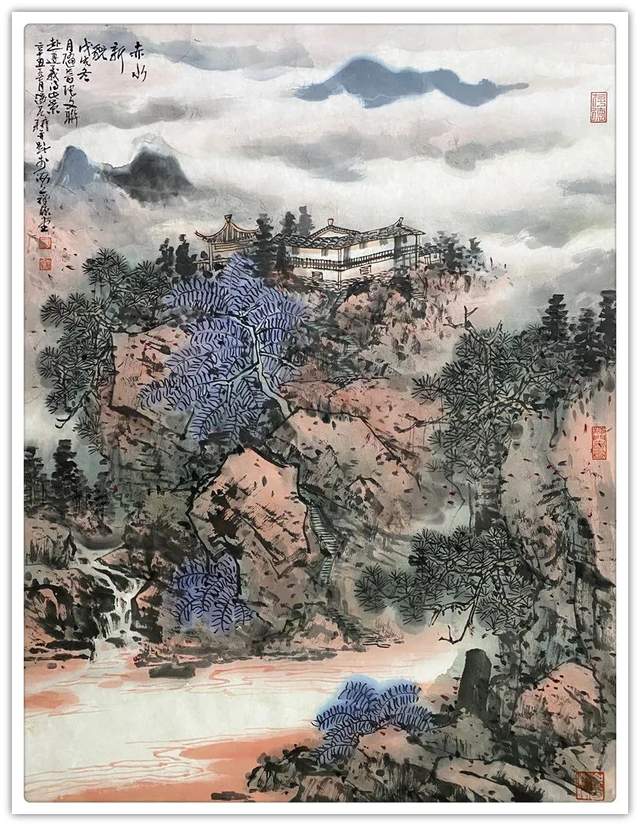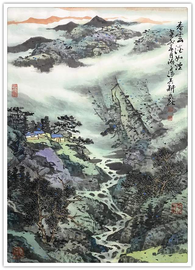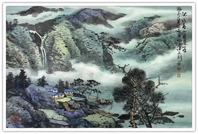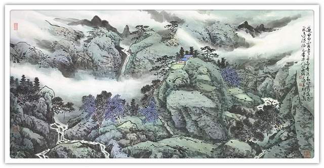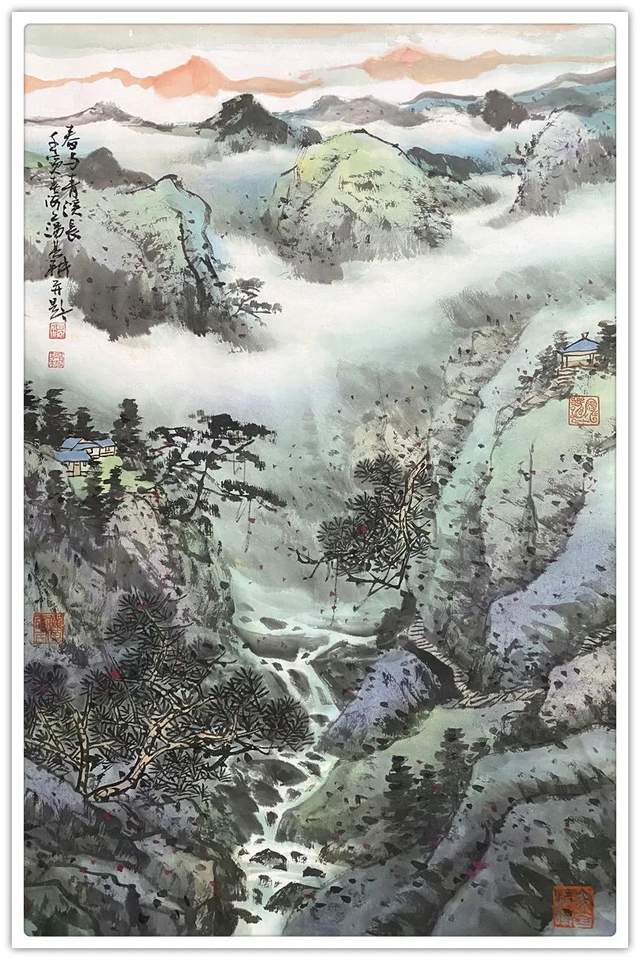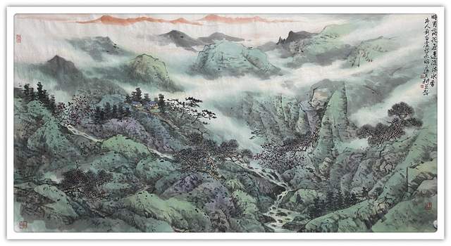 2006年受国务院民宗委委托作巜山高水长》图,祝贺香港佛教联合会主席觉光大和尚八十八华诞。