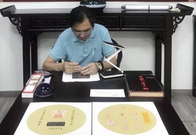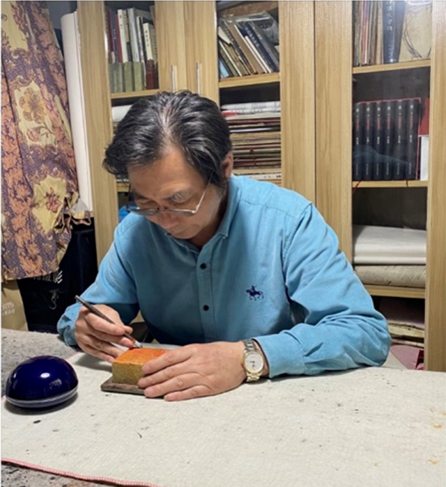 从弱冠到而今古稀,经过50多年的耕耘积累,对中国书法特别是篆刻艺术已有独到的见解和深厚的功底。陈老师的正楷端庄威严,行书洒脱俊逸,草书笔走龙蛇,篆书更有强大气势。特别是近几年每每都有力透纸背之佳作。更值得一提是他对中国民间艺术篆刻有着浓厚的兴趣和执著的热爱,他的篆刻布局合理,方寸之间疏密有致,别出心裁。每方篆刻都浸淫了他的心血。或精妙绝伦,或栩栩如生,实乃鬼斧神工。