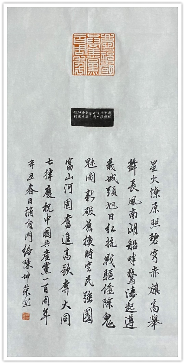 庆祝中国共产党一百周年(附款)69cmx34cm