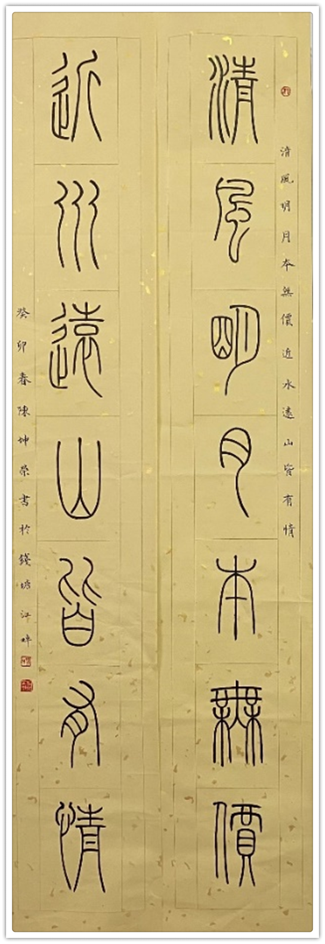 铁线篆 清风近水七言联138cmx23cm