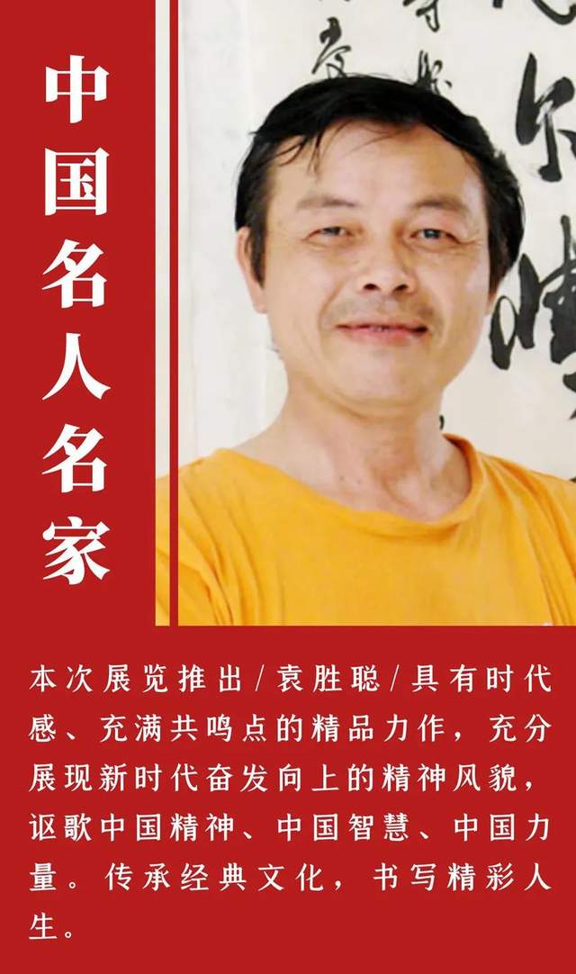 袁胜聪,男,1954年12月出生,1982年在广西艺术学院学习深造。系广西美协会员、书协会员、中国书画家协会会员。师承阳太阳、史国良、郭绍纲、刘绍昆等中国著名画家。书画作品在美国、德国、法国、意大利、日本、加拿大、菲律宾、香港、台湾、等国家和地区展出,并在中国书画报、书法报、书法导报、美术报、画家报等报刊发表。国画作品:《激流勇进》、《大山的希望》入展第16届亚运会当代艺术展、《群峰叠峦》入展第七届当代中国山水画大展、《春风》入展第九届全国著名花鸟画名家作品展。油画作品:《今秋》、《赶集》、《明朗的天》入省展览馆展出。书法作品:入展第三届中国职工艺术节“神华杯”书画作品展获入围奖、中国梦全国名家书画艺术大展获铜奖、第二届“贝杉杯”全国书画作品大赛获一等奖、“百岁人生”全国首届书法绘画摄影主题创作大赛获银奖、“文化中国.森茂杯”2016全国优秀书法作品展获优秀奖、“华珍阁杯”全国书法作品大展、第八、第十届中国名人名家书画作品精品展等。多幅书画作品被中国军事博物馆、国家博物馆永久性收藏。书画作品及传略入编:《中国美术选集》、《影响中国100位艺术大家》(山水画卷)、《中国艺术品最具收藏与投资100位艺术家》、《中国艺术40年》、《中国学院派艺术家三十人作品集》、《全球最具影响力二十位艺术家》、《中国当代美术家名人录》、《世界名人录》等120部书画大型辞典。出版:《中国邮册"美丽中国”》、《泼墨人生一中国当代水墨天地》等书画作品集。