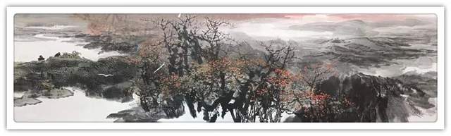 陈先生是将点彩用到极致的人,他的过人之处是在湿的气氛里营造一种毫无渣滓的光明。这种光明由墨而发,由笔而生,由彩而活。他擅长用墨反复营造一种湿漉漉、雾蒙蒙的意境,然后用笔勾勒明确山石轮廓,最后用彩补充完善。再加上点景人物、舟桥、飞鸟、家畜等,让作品诗意盎然、极富生活。所以,我以为,陈先生的高明之处在于以南方的温婉、沉郁、北方的雄浑诗意写家乡冰雪山水里的旺盛生命力。尤是其四季山水中的春、夏、秋景,既有传统哲学中互为依存的学术思辨,又有怅然抒怀的文学情境。概括起来,他以古法开生面,形成了我之为我的画法。并在前辈的基础上赋予东北山水新的精神风貌。