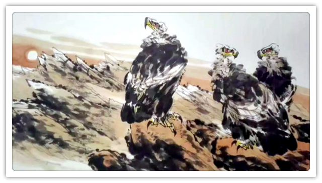 雄鹰是他喜欢的绘画题材之一,或雄踞松石,或翱翔长空。对于鹰这种动物的描绘,他笔锋犀利,纵情挥洒,整幅作品充满了刚劲的气势,在画面中用更加刚毅的线条来突出鹰的雄姿和霸气,让我们能够直观的感受雄鹰的凌烈姿态,在他的笔下,以公鸡作为主角的作品则显得充满了生活的情趣,画面柔和了许多,也更加丰富,将国画中色墨相融的技巧发挥到淋漓尽致。欣赏张金荣的国画作品,完全就是一种美的享受,是对于国画艺术的又一次膜拜。