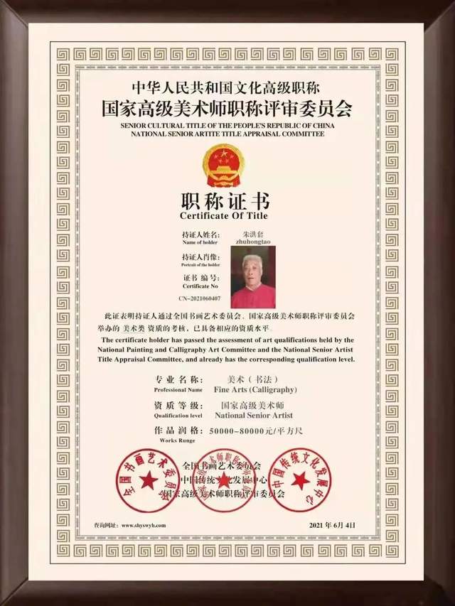 作品多次在海内外展出获金奖,被授予“中国书画家领军人物、人民功勋艺术家”,2013年获“中国载人航天书画艺术家终身成就奖”等荣誉称号。2014北京Apec峰会展获金牌奖并被授予“最具影响力中国书画名家”,“河南十大艺术创新特别贡献人物”。曾受到原国务院吴桂贤副总理的亲切接见并签字合影留念。作品以倡孝倡廉为主线,作品刊登在《中国书画家领军人物》《世界名流》《中国书画家》等几十部书刊杂志和互联网上。2016年9月1日文化部正式颁发三证,中国书画家资格认证、润格证、收藏征。2019年在金牌书画家网展上获第一名特等奖牌。