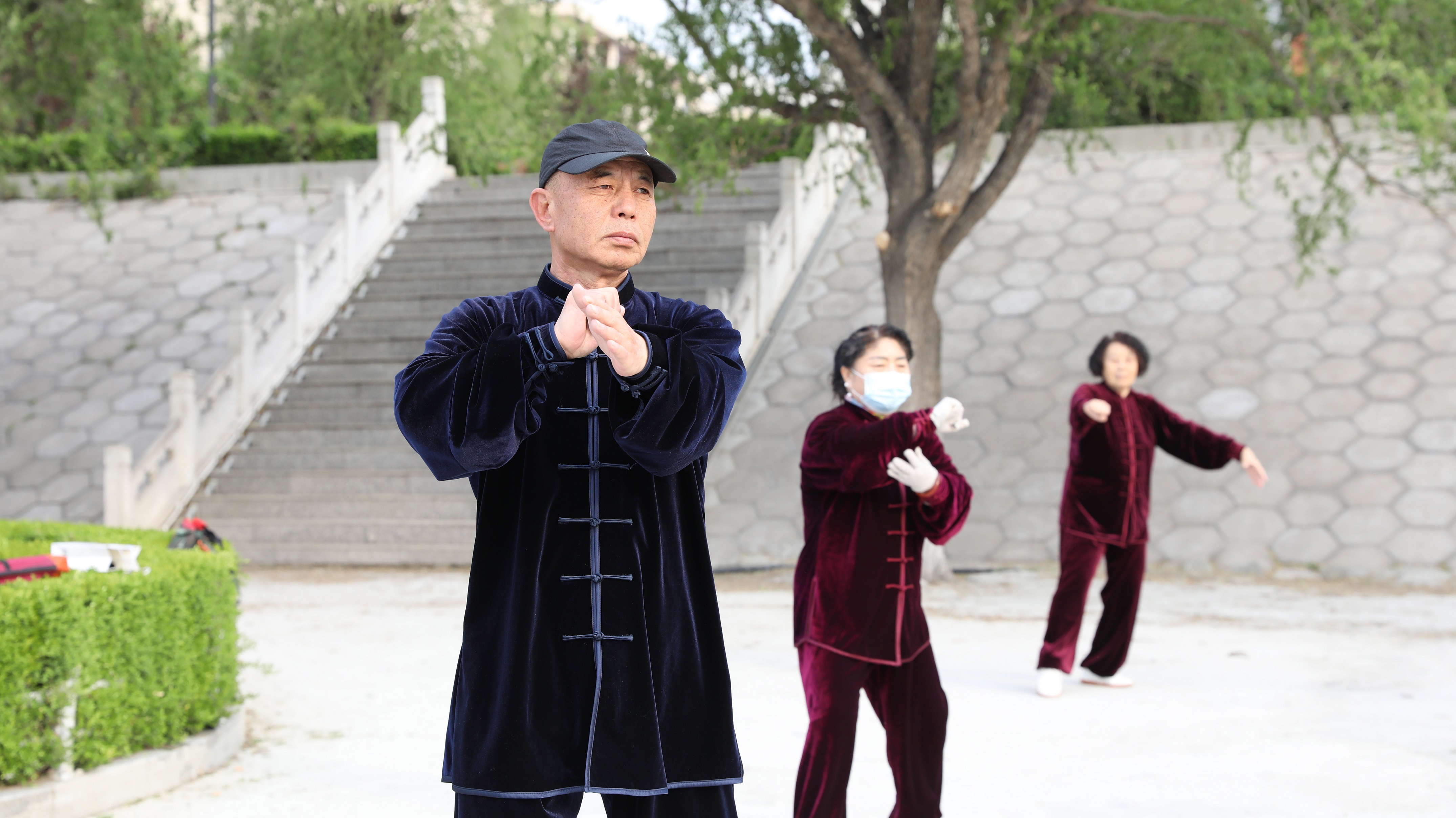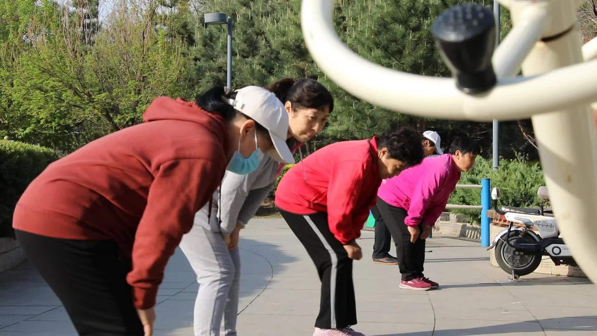 在平泉市一处口袋公园,市民正在晨练。李成宇 摄
