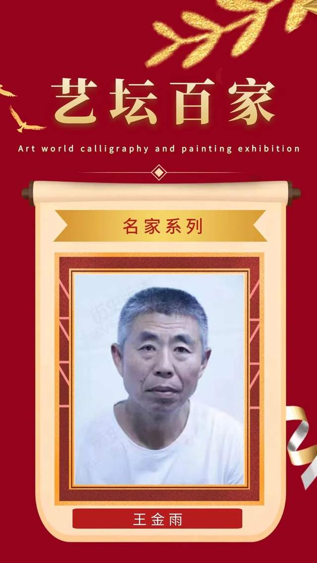 王金雨,又名王进雨,字敬之,东来轩主人。性别:男,汉族,出生年月:1964年9月,河南省鄢陵县人,现为河南省书协会员,自幼对书法兴趣浓厚,从1980年开始临帖学习书法,先从颜柳欧赵楷书入门,后学行草乃至篆隶,特别对王羲之的兰亭序、聖教序、十七帖爱不释手,如获至宝,坚持每天临习,思考用笔技法,为了更进一步深入学习,毅然报入欧阳中石先生创办的中国书画函授大学,后拜中国书法协会前任书协主席张海先生和著名书法家宋华平先生为导师,从此书法水平快速提升,在各大书法比赛中屡次入展获奖并得到导师好评,经过多年不断努力,刻苦练习,精品频出,深受全国藏友们的喜爱与收藏。