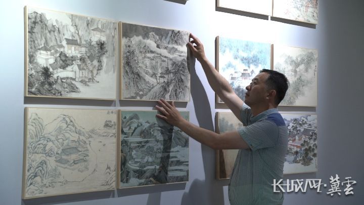 承德市文物局总工程师陈东正在整理展览作品。长城网·冀云客户端记者 陈志洋 摄