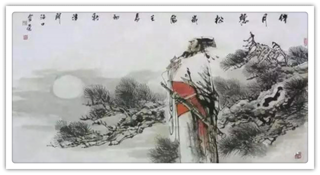 张金荣的水墨人物画大多取法后者,多年来他潜心研究人物画的衣纹样式,一点一画、一拖一摆均在力求凸显线条的美感,为充分发挥书写用笔的特性铺出水墨平台。他塑造人物的线条感强烈,即体现了准确的人体结构和夸张有度的动态,又具备书法艺术的一张一弛节律,合乎章法和浪漫气韵。赏读其画便有轻松自如、清丽俊逸之感。金荣水墨人物画线条呈现出的艺术魅力,主要得益于他早年创作连环画用笔勾线的造型基础和疏密有致的巧思。张金荣水墨人物画用墨用色也很到位。墨色浓淡相宜,既有淡淡的阴柔墨韵,又有浓重的阳刚墨块。