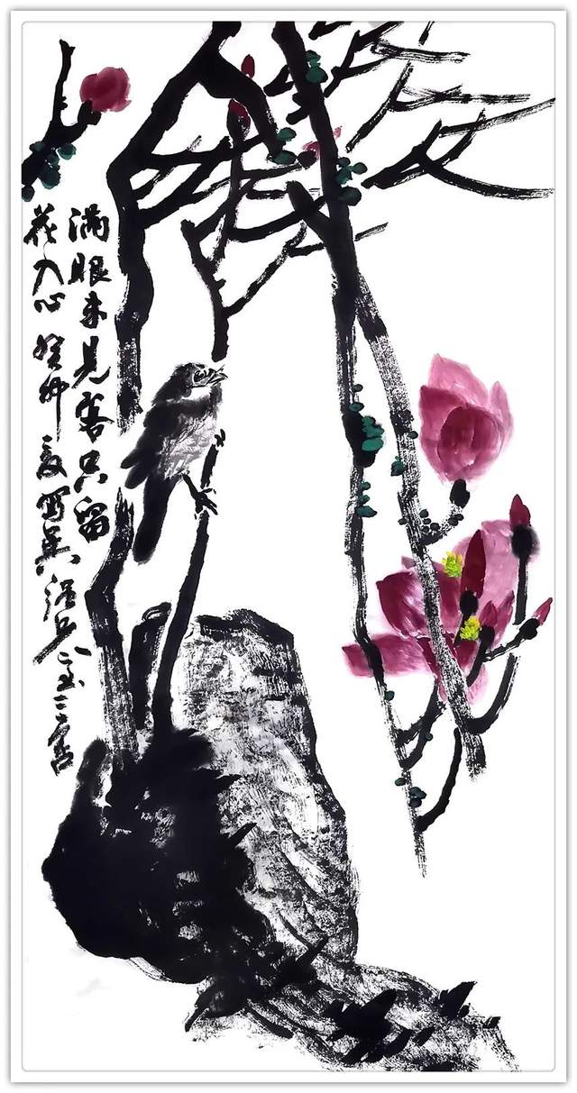文人花鸟画创作延续千年,如果从满足艺术审美和中国画本质旨意追究,写意的表达更贴近文人的心灵诉求。写意容易铺排,但作品格调的高下却较难把握,与艺术家的综合修为相关,比如观念、思想和境界等等,这些务虚的内容其实更会影响到表现写意的根本所在。当然还包括艺术家对于构图色彩线条笔墨等技艺的理解和熟稔运用。