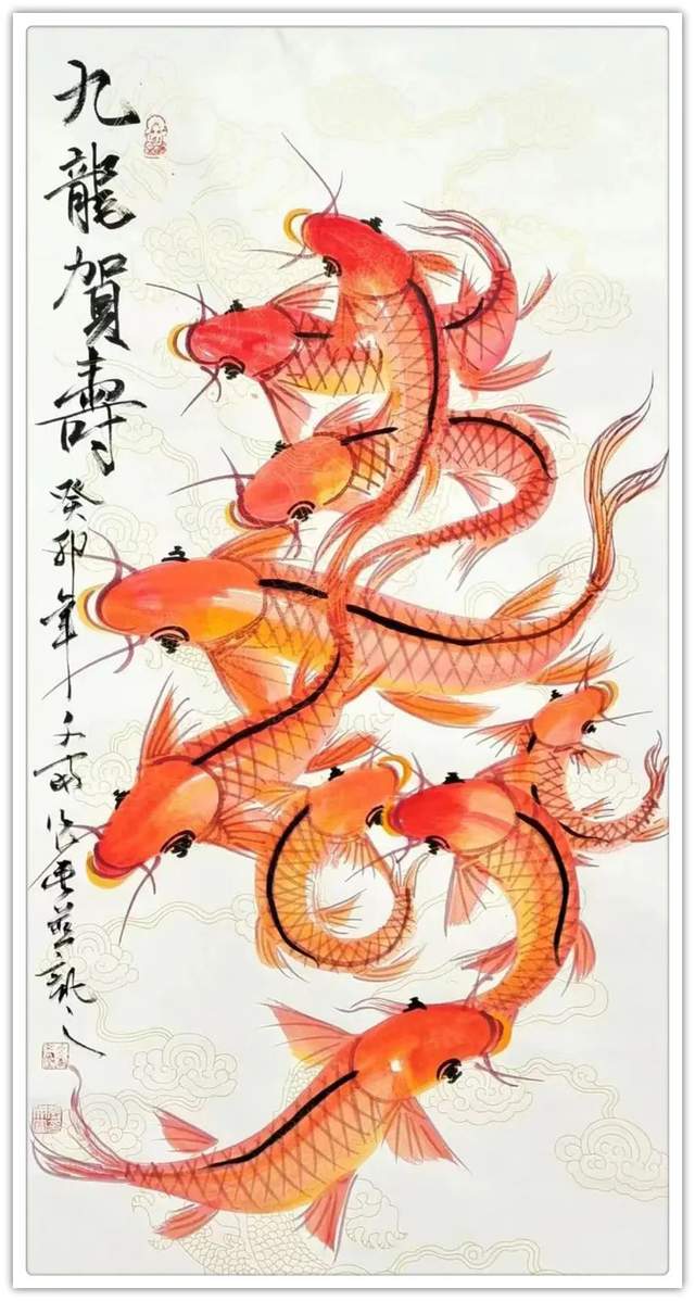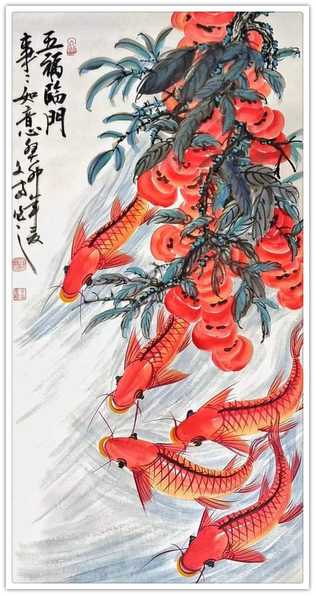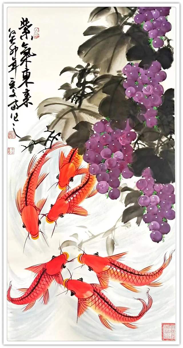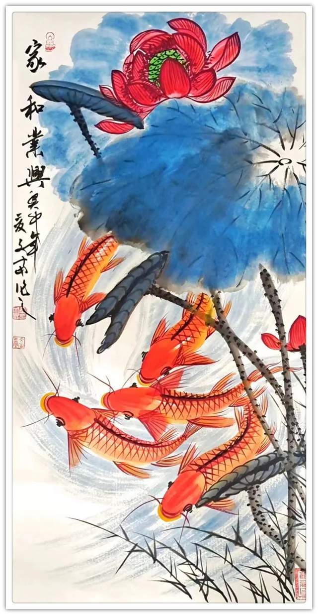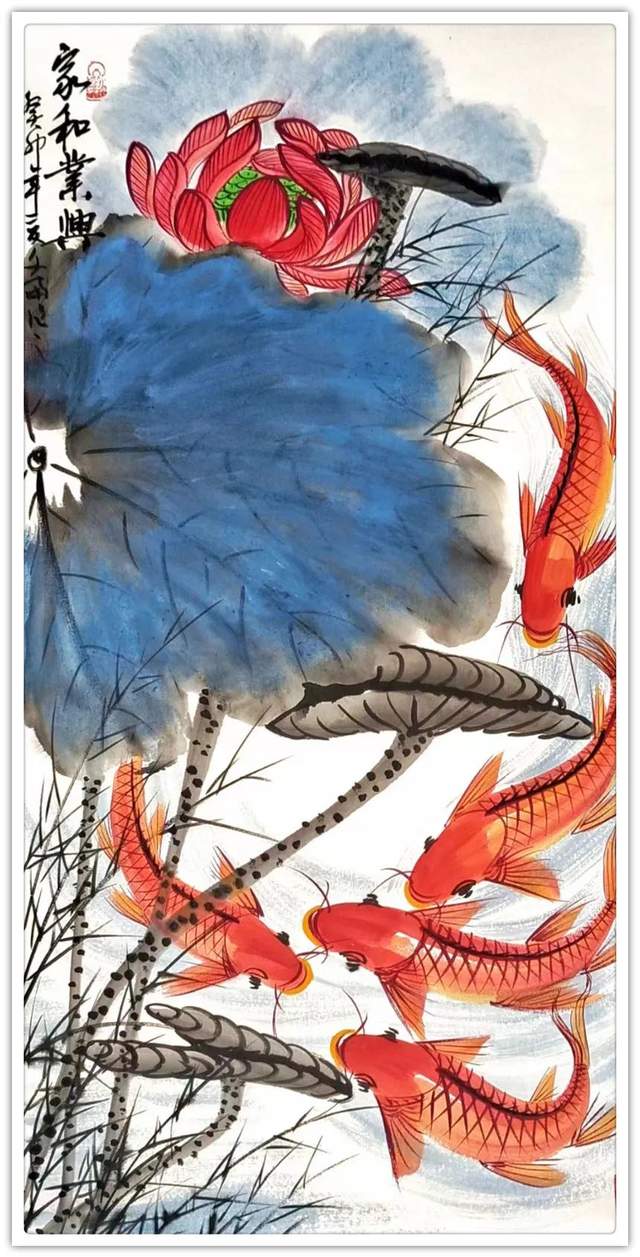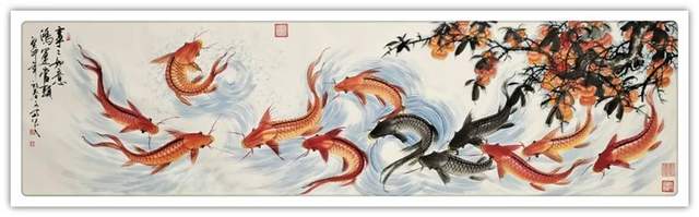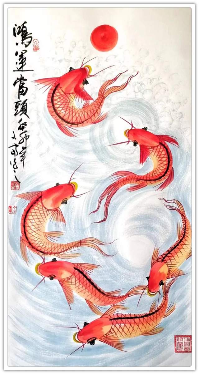 鱼在国画里是常见的创作经典题材,因鱼象征着祥瑞,吉祥,寓意美好。在中国每逢过年过节,家家户户的餐桌上都会吃鱼,预示着生活蒸蒸日上,年年有余。因“年年有鱼”和“年年有余”他们的谐音之妙,它代表着年年有余,富贵有余,吉庆有余,所以画家常用鲤鱼做创作题材。