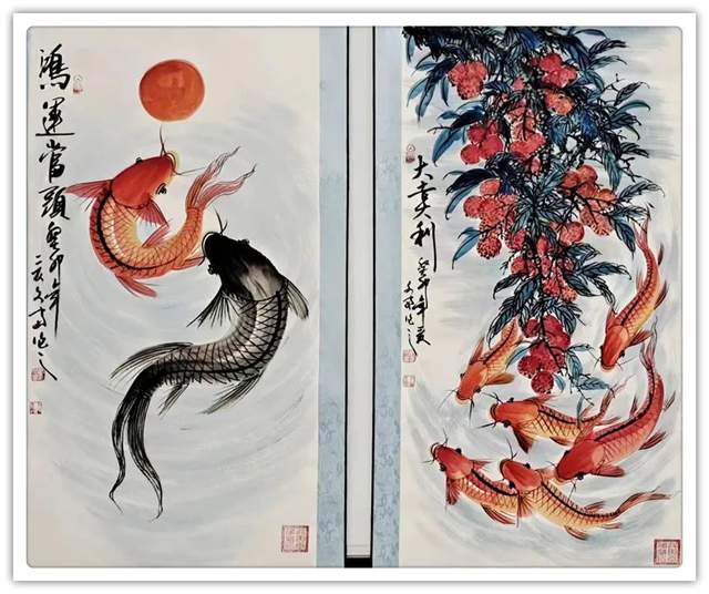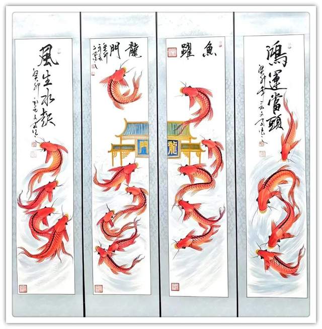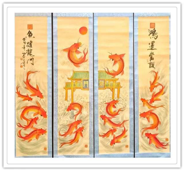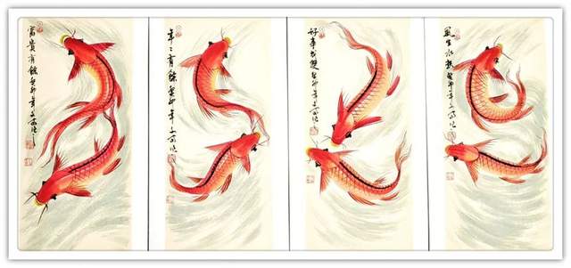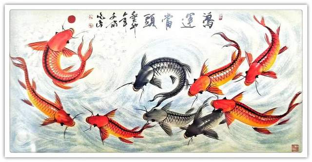 除此之外,鲤鱼的数量和颜色均有它吉祥的寓意,生机灵动的红鲤鱼有旺运之说,黑鲤鱼则有消灾辟邪之意。观赏性十足,挂在家中或是办公室内都可以起到招财纳福的效果。