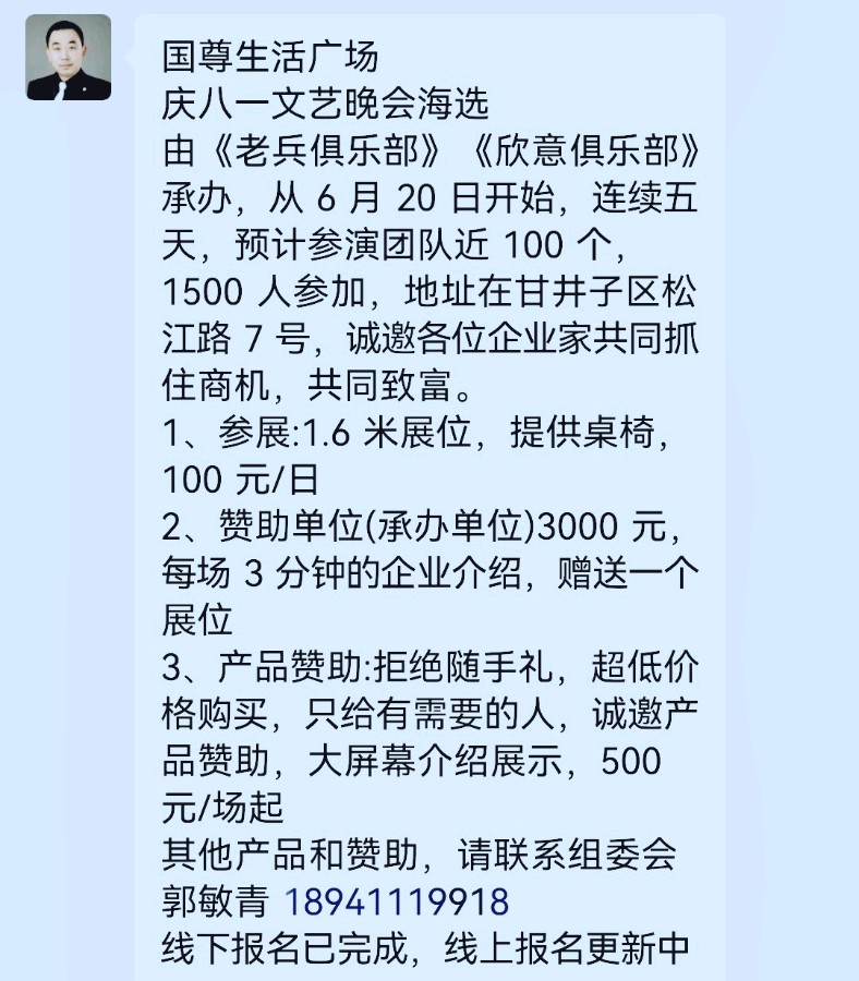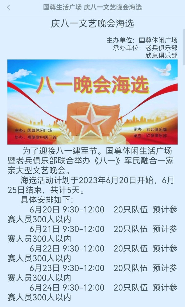 \ 〖🗼头条传媒•广告〗国尊生活广场庆八一文艺晚会海选公告