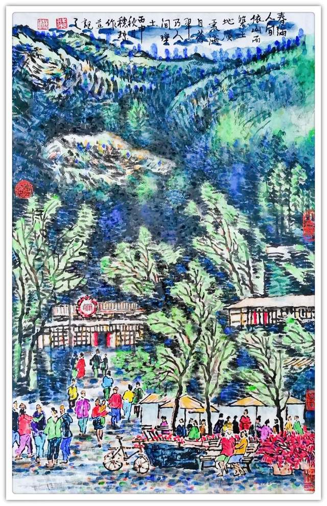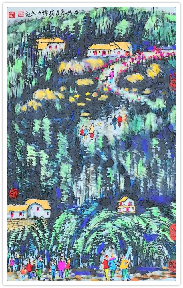 而在画面的境界流露和取景图式上,叶穗琼女士则又是有展现出了一种人文蕴藉的内涵感,和赋色的重意浑然不同,这种内涵感的形成并非是来自于技法的表现,而是来自于叶穗琼女士本人多年来的写生积淀和心迹共情!在画风.上追求高山流水的隐世感,在精神上又尚求淳朴平静的宜居感,山水盎然,民居调心,而这一幅幅风情雅逸的丹青艺术画境,也已然.都是有被叶穗琼女士的笔触抒发到了极致!清秀于景,畅怀于心,可品可赏,可游可居!