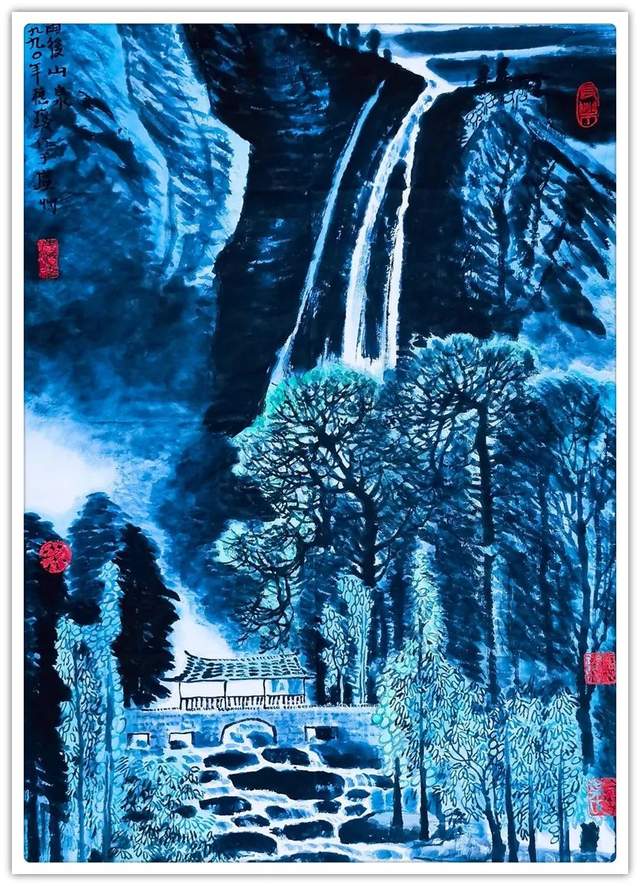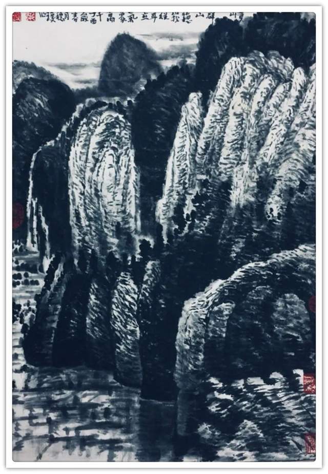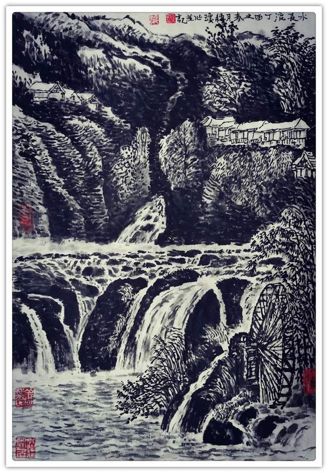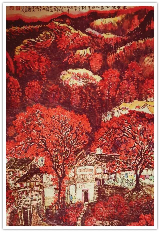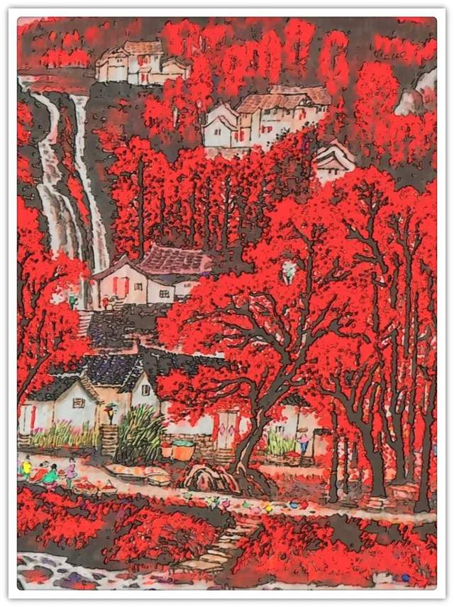 在笔墨的技法表现上,叶穗琼女士是有去极力的对标于时代风范,正如画坛常言那般,恰是笔墨当随时代!不仅如此,得益于她本人对于自然美学的高度参悟,其笔墨和赋色之间的相互交融也是有得到了全面的美感升华,一幅山水民居画作中,是有重色层染之密润,也见点线呼应之交集,前者是以浑然色感而呈气象,后者则是以疏密变化而立风骨,如此一来,便就能使所绘丹青成功突破于大众化的单一格局,力避匠气,不入俗流,取而代之的则是一种以时代精神和墨色交融所最终形成的新自然气象!视觉质感,妙韵绝伦!