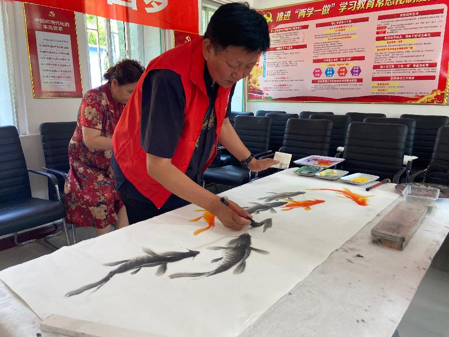 整场笔会共创作“花鸟鱼趣”、“硕果飘香”、“山水写意”等书画作品40余幅,书画爱好者们纷纷驻足欣赏,活动现场气氛热烈,充满欢声笑语,让村民们深切感受到了中华传统文化艺术的魅力。