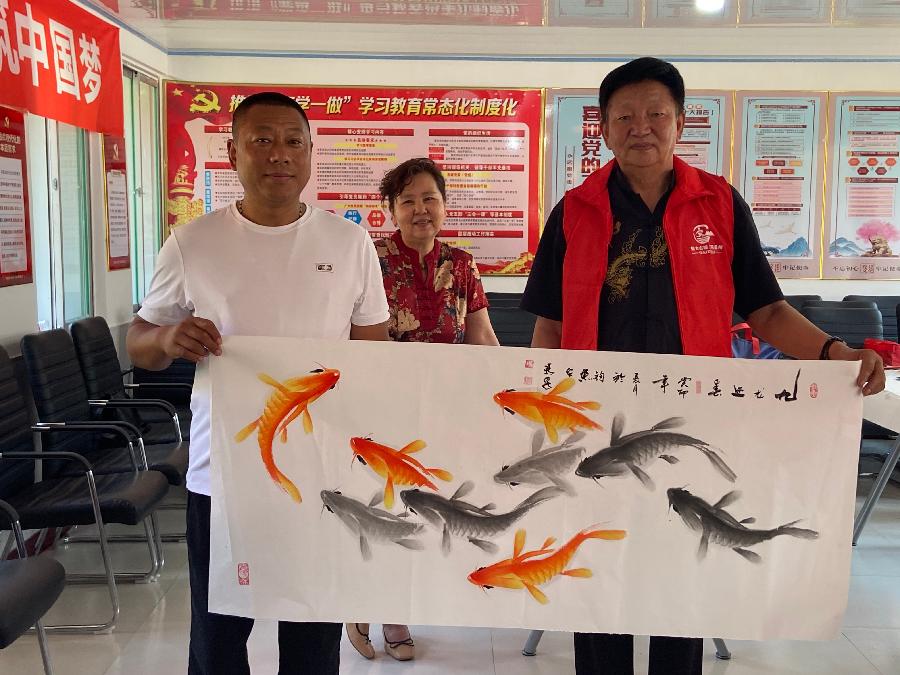 矿洞沟镇钓鱼台村党支部书记马春松表示,感谢市文联,市文化艺术促进会,到我们钓鱼台村送书画进基层活动!“‘艺术寻找乡村,乡村也在呼唤艺术’,乡村要振兴,艺术大有可为。让艺术走进乡村,是对其社会价值的重新激活。而这也绝不是一时的下乡‘送文化’,而是要长期‘种文化’,形成能长期扎根、并带动村民参与艺术创作、助力乡村良性发展与治理,以艺术激活乡村文化、推动乡风文明、用文艺方式、文艺因子激活乡村资源,赓续地域文化,赋能乡村产业兴、环境美、百姓富、治理好。”