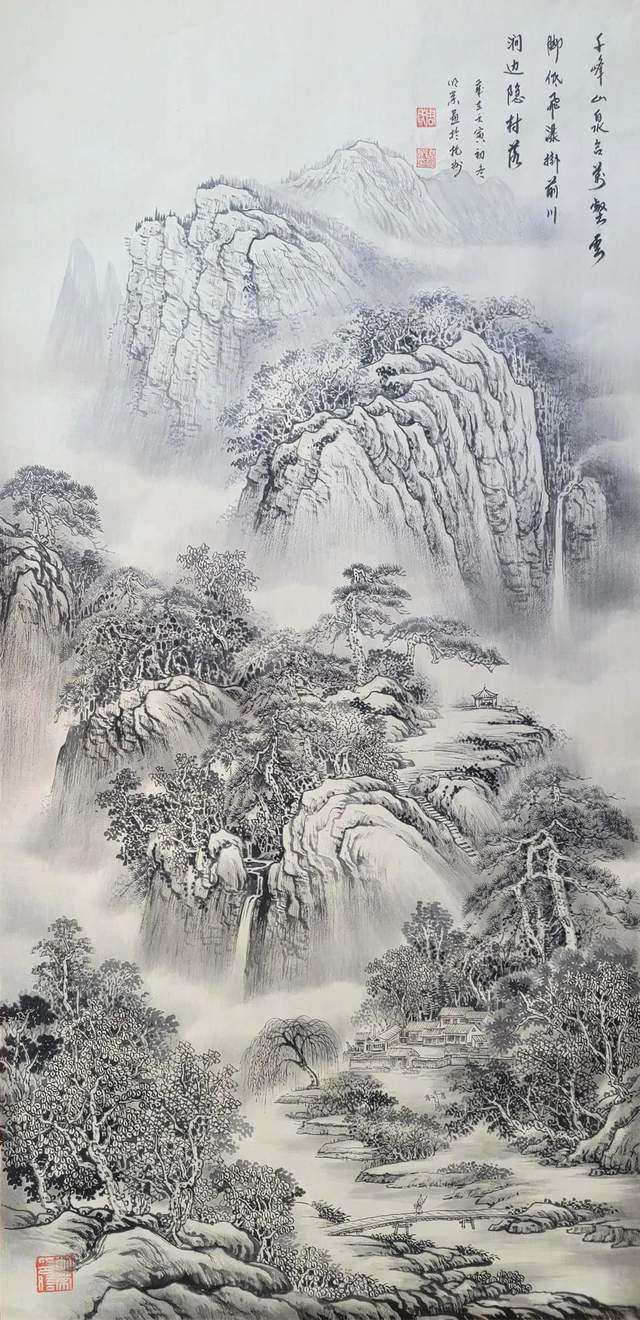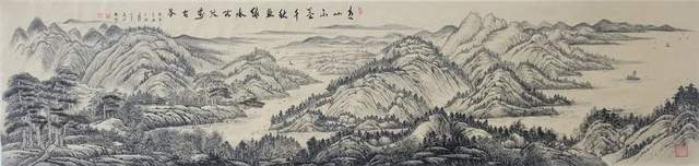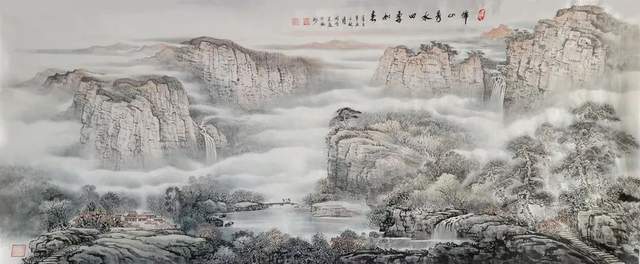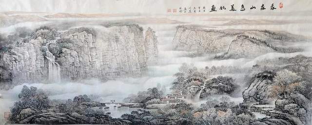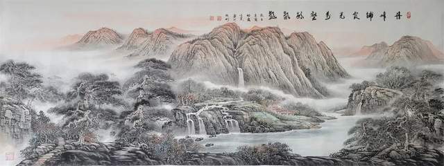 清新洗练写雅风,气韵生动绘书卷。他的山水画追求天人合一的意境,无论威严山之大,还野境水孤舟,都是独与天地精神往来的哲思平台。画外之画是天道,味外之味是情怀,笔墨之外是境界。法成道,情寓思,笔墨是修养,所以他的山水画有可行、可望、可游、可居的四可之妙,品鉴可悦目,经久耐观。一幅画揣摩一年,总是越看越发精微的体验。在哲思与情怀的双轮驱动中,他的山水成为画成的风雅颂,书卷气息扑面而生,无论勾勒、皴擦还是点染,都是设诗意立意境的高度,创作灵感与笔墨逻辑浑然天成,把美的认知沉积成美的哲学,让这典雅精美的山水取向,汇成了山水文化的正宗主流。功在传承,大家立巅!