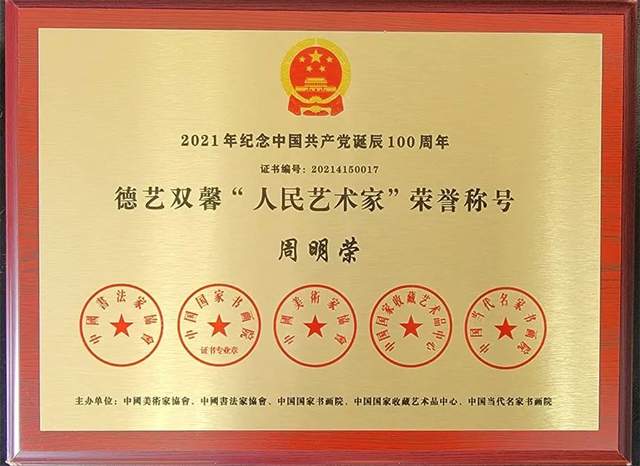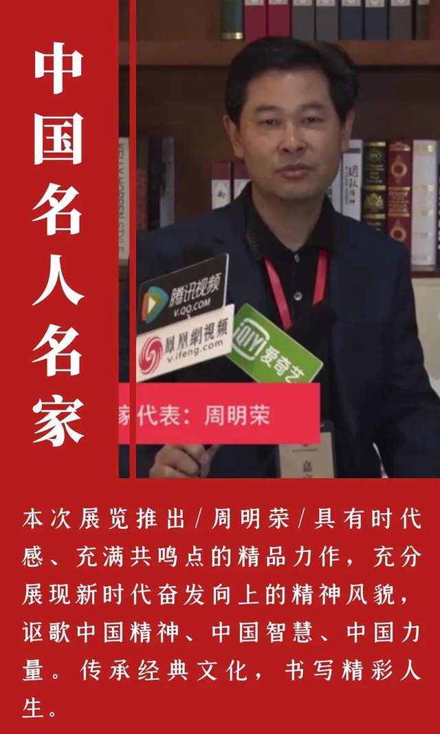 周明荣,1962年生于浙江,国家一级美术师,教授级高工,非遗高级国画传承师;中国书画家协会会员;北京京华阁书画院副院长;北京古今翰墨书画院副院长,中国书画家联谊会新文艺群体书画家工委会《新文艺》杂志编委;中国楹联学会书法艺术研究会副秘书长;中国民族建筑研究会书画艺术专业委员会理事,中国传统文化促进会会员,北京胡润国际艺术鉴定中心特聘书画家,央视《艺术传承》栏目组客座教授。