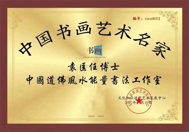 2018 年庆祝 工合协会成立八十週年北京人民大会堂书法参展杰出奖。2018 年海南博鳌文化彰大会当代书画家出展 优秀奖,2018 年北京十一国庆书法贡献奖,中国改革开放奠基者金牌奖,中国第二届古建筑文化书法作品展出优秀奖,2018 年改革开放四十年突出贡献艺术家金奖。2019 年 3 月出版苏富比艺术拍卖画报封面人物重点投资艺术家,2019 年 6 月,中日友好协会,获得中日文化艺术交流亲善大使证书和称号。2019 年 11 月在英国剑桥大学举办的“2019 英国剑桥国际当代艺术邀请展”中,授予“中英 艺术终身成就奖”,荣获英国剑桥‘市长,颁发国际艺术亲善大使证书和奖牌!2019 年出版了走向世界的中国学者。袁匡任一一聚焦两会 2020 年国际书画艺术创新人物。2020年,国际名人百科,支援抗疫英雄书法家称号。2020 年 5 月,荣获全球书画名家,抗疫环球行,大爱无疆艺术家称号。2021 年度被选上跨国际国家形代表人物刊登美国《时代周刊》《TIME》代表人物。2021年北京全国两会书画家献礼代表人物 2021 年走向国际华人的世界名人艺术家袁匡任之道佛能量书法艺术!2021 百年建党巨匠书法家封面人物袁匡任,袁匡任在支援世界抗疫环球行获大爱无疆荣誉金奖北京文联出版社 2018 年 12 月出版,袁匡任 以道佛能量书法传递正能量,书写出“道佛中国 心,两岸一家亲”的伟大旗帜。中国道佛能量书法, 获华夏文化遗产传人证书。中国传统道佛能量书法传人, 审定为国家非物质文化遗产传承人。道佛能量书法的五个中心:一,弘扬丝绸之路,宏观战畧。二,道佛中国心,两岸一家人。三,地球家园共一村,世界和平同命运四,一中两岸,和平统一,振兴中华。五,中华民族伟大复兴,共圆中国梦。