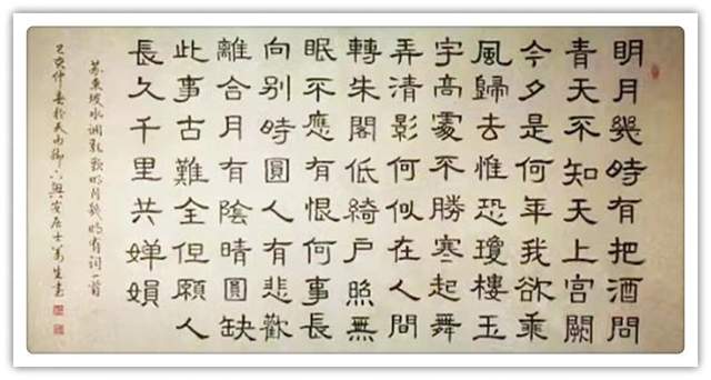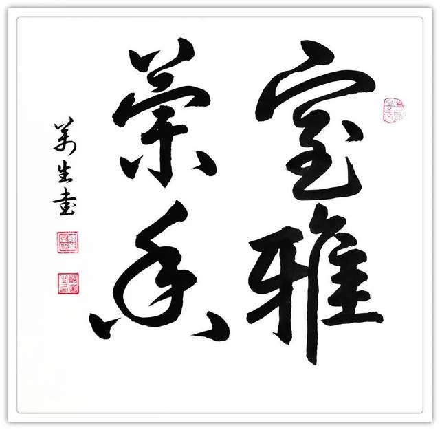 当然,要论书法的真功夫,还要看楷书。当代楷书,不能写精详已是流弊,楷书功夫不到家,直接狂草者大有人在,结果笔力不到,结构不成,狂草常是先天不足的糜疲。反观郑先生的楷书,法不欺人,功不欺世,是以帖得气韵,以碑立筋骨的典范。唐楷诸家一一琢磨,得欧楷之险笔,得颜柳之筋骨,也参意元代赵楷的形断意联,带着写行书的顾念作楷书,可避呆板,尽得生动。楷书抄径,笔笔精绝,点画要妙。韵合心经意,笔写灵飞功!勒笔缓去急回,努笔直作曲势。横必正如孤舟亡横江诸,竖必直如春笋亡抽寒谷!非临池不辍,非心追手临而不能像先生这择把揩书写得正大气象!