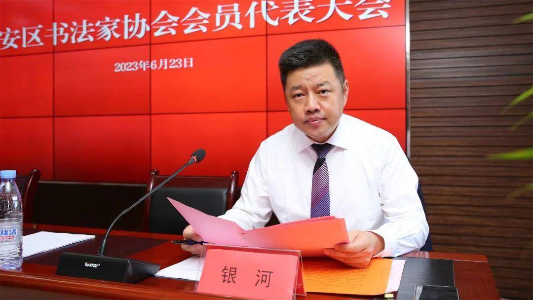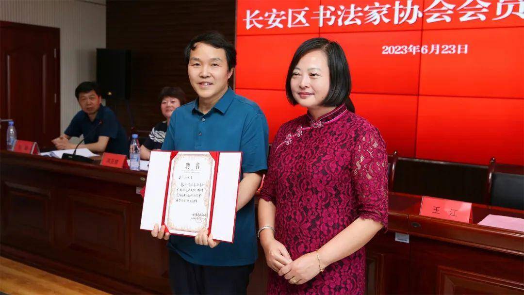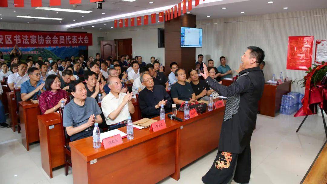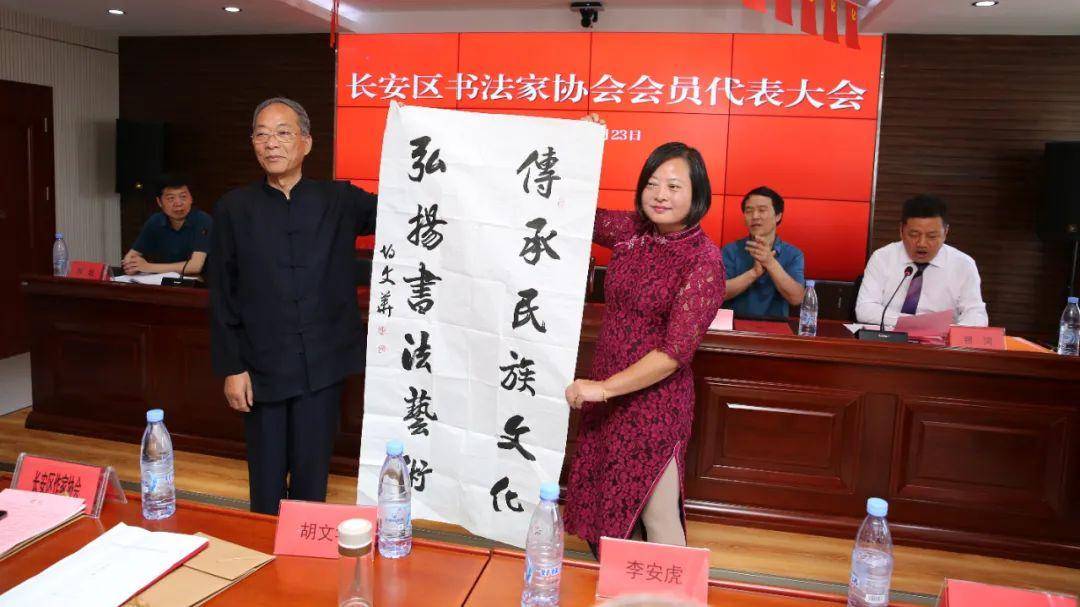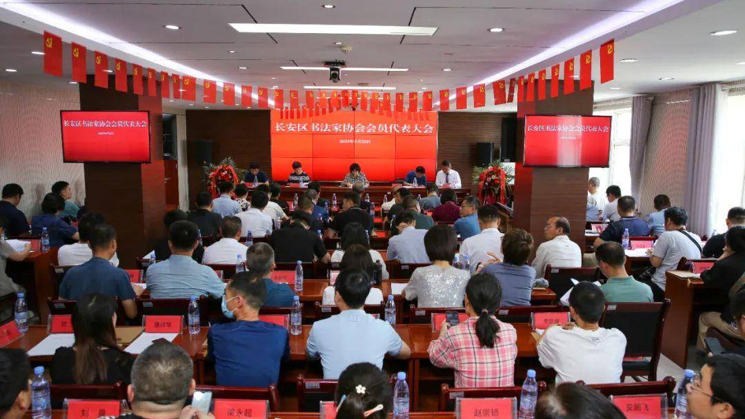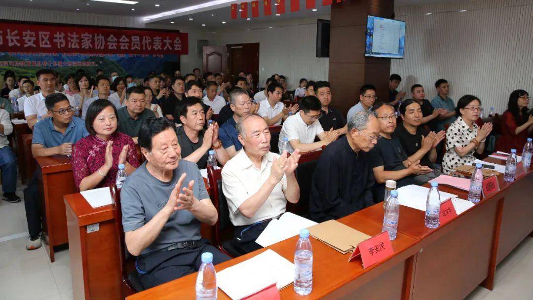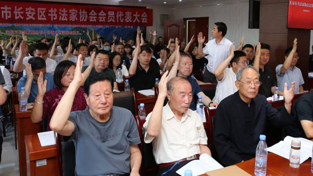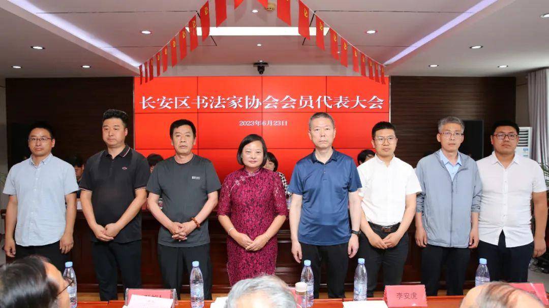2023年6月23日上午,长安区书法家协会会员代表大会在金羚大厦胜利召开。长安区委宣传部副部长、区委文明办主任赵晓薇,长安区文联主席王江,区民政局副局长高亚慧出席会议,区作协、区文艺志愿者协会、区美协、区摄协负责同志到会庆贺,区书协主席团及会员代表一百余人参加会议。