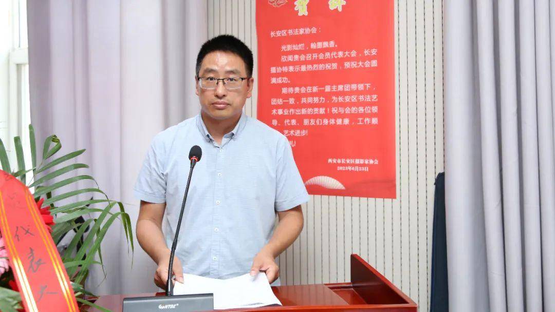 区委宣传部副部长赵晓薇在讲话中强调:长安区书法家协会要加强书法家队伍的党建工作,明确创作方向,以“服务人民群众、服务社会”,为己任,要积极开展文艺“六进”活动,开展书法志愿服务活动。积极参与文联、民政局组织的各项活动,贡献书法工作者的才情和力量。本次会员大会将作为一个新的起点,在区委、区政府的引领下,在区委宣传部、区文联的指导下,长安区书法家协会将继续踔厉奋发,勇毅前行,更加坚定为人民书写的方向,创造出更多的精品佳作,为长安区文艺事业的发展做出新的贡献。