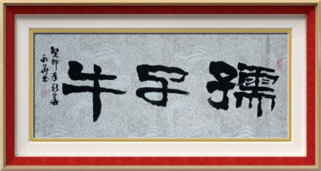看先生的风格特点,笔画的恣情肆意,长戈大戟似黄山谷;风樯阵马、痛快淋漓如米元章;参差错落、穿越掩映近王觉斯;屈曲盘纡取张长史;刚健雄强像李北海。而郭沫若书风的那种凝聚着时代精神的蓬勃气息,在他的笔下依然化而犹存,每每露出端倪。细细观摩,虽汪洋恣肆,忘怀法则,而法度尽在其中。取法之广,融会之妙,用笔之奇,一片烟云化机,凝成自家风貌。