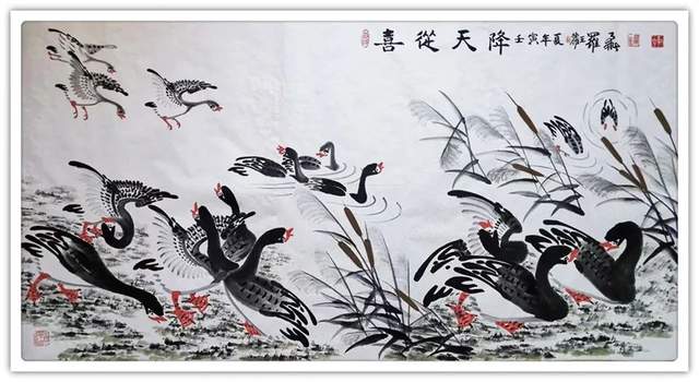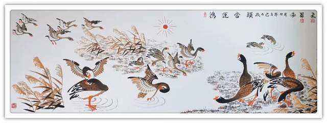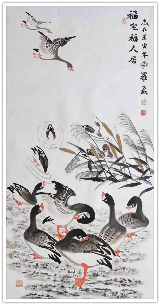 罗维存先生简介:中华人民共和国国宾礼特供艺术家罗维存以专绘鸿雁著称当今画坛,他笔下的鸿 雁如仙女下凡神态各异、食宿飞鸣、千姿百态、栩栩如生、神韵十足,表现出极大 的生命力。北雁王·罗维存为人处事淡泊名利、重义情深、书生意气,学者风范。他的鸿雁作品让人心旷神怡。