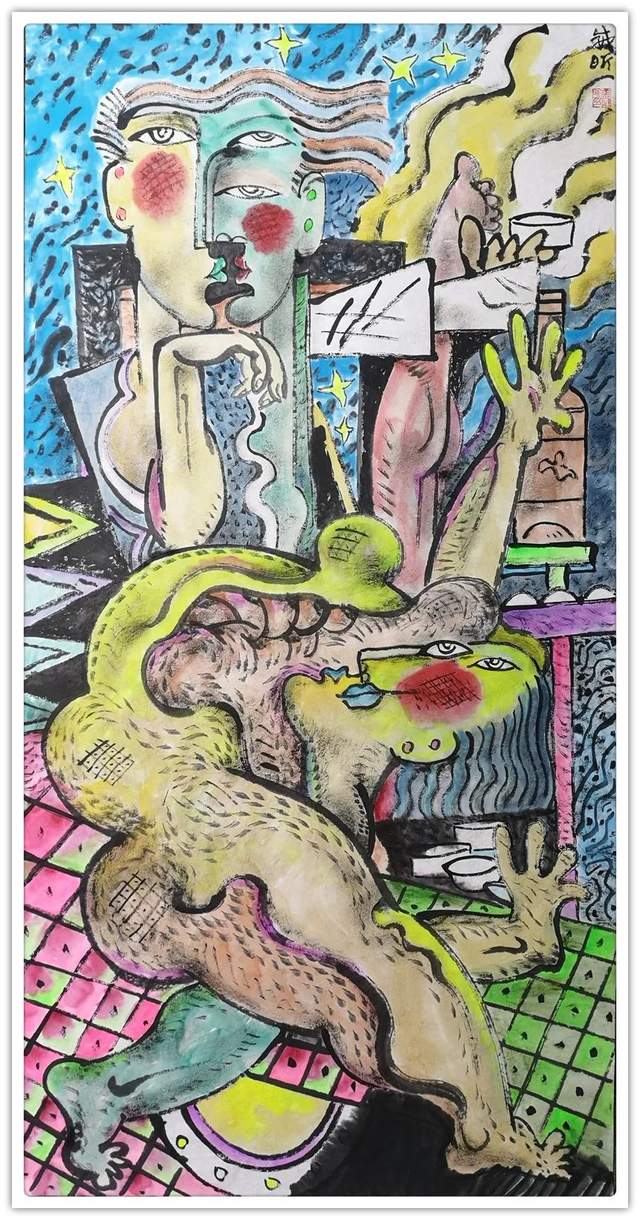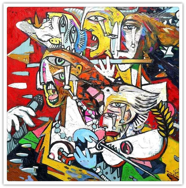 看了金威昕的艺术个展作品,我总认为他应该是一个朝着多栖方向发展的艺术家,属于那种跨界型的当代艺术范畴,从传统到当代,从平面到多维,从民族到世界,从人文到哲学。拿手的雕塑也好,丹青国画也罢,甚至是西方油画,首先彰显的是他扎实的艺术功底,其笔墨酣畅淋漓,而造型惟妙惟肖,之后就是洒脱的艺术创意,再之后却是心境的表达,这种表达艳而不媚,大气磅礴,呈现给观者的一切形式的"视觉美"到"心里美"都是这位艺术家带给我们这个有形世界的"赋能"效应。他凭借着色彩、线条和造型把中国与世界用笔涂绘在一起,表达出一种难以用语言来形容的"美",可以说,金威昕的艺术世界是一种无界的、多元的、通灵的、美妙的。