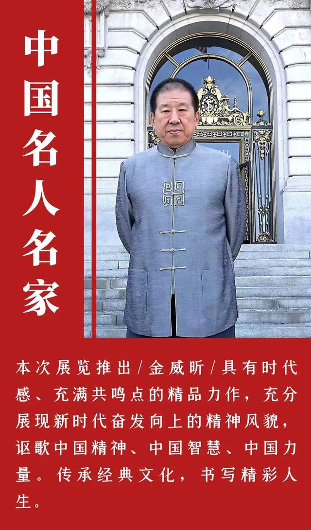 金威昕(爱新觉罗·威昕):满族,1956年生,1979-1984年毕业于鲁迅美术学院雕塑系,学士学位,教授,国家持证雕塑家,国家一级画家,先后在美国,澳大利亚,日本,泰国,香港,深圳举办个人画展。