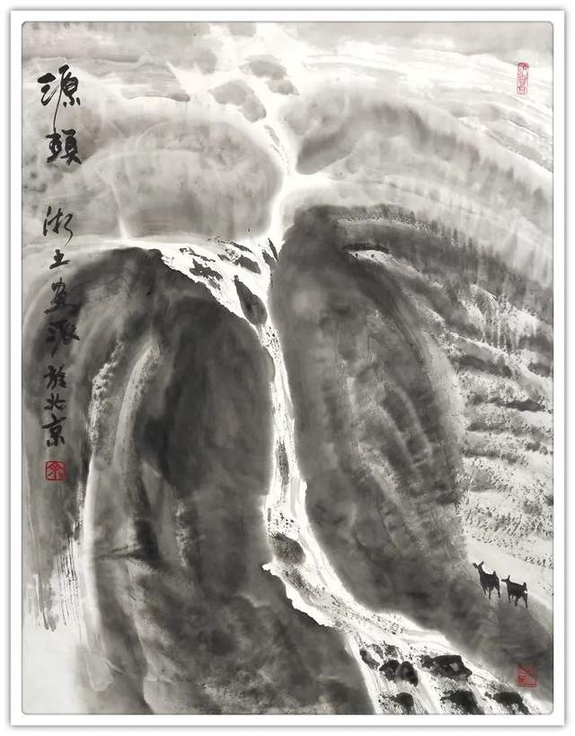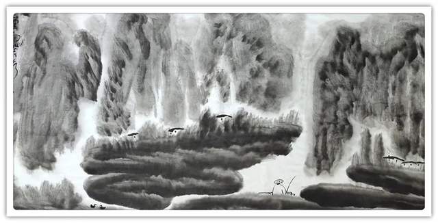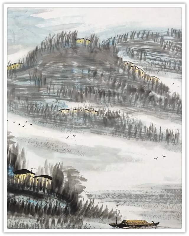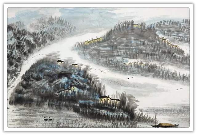 与此同时,相比于其他画家的描摹自然和搬照自然,余和平先生的众幅山水写意作品则是更加倾向于一种对心迹情怀的内在交融!因此在欣赏余和平先生的众幅山水画作时,就绝不能是以单纯的搜尽奇峰打草稿来概括,而应当是以一种雅俗共赏的审美状态来共情欣赏!俗者观其山水风范,雅者品其寄情意义,前者表现山水,是可见墨色之叠嶂,而全无丝毫的矫饰与刻意,飞瀑流水,渲染自然,林木丛生,更觉妙逸!后者蕴藉山水,则又是可见乡土气息和人文气象的双重流露,田野耕耘,民意淳朴,情景之美,可谓浓郁!