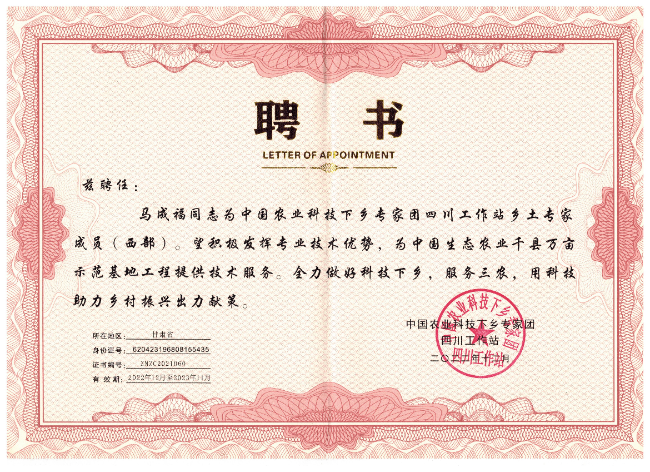 2019年7月,鉴于马成福在文冠果行业扎实的实践技术和超强的理论功底,他被甘肃省人力资源和社会保障厅及甘肃省职称改革办公室破格评审为农民技师中级职称。