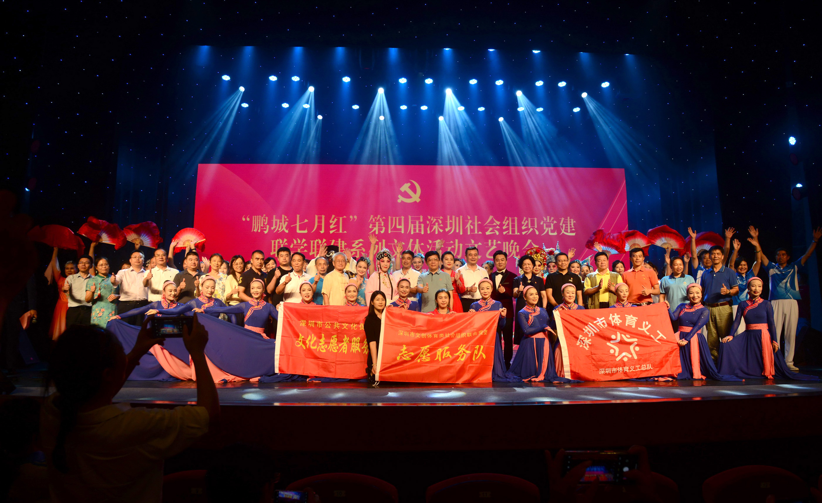 7月7日晚,由市文创体育类社会组织联合党委、市社会组织总会联合党委共同主办的“鹏城七月红”第四届深圳市社会组织党建联学联建系列文体活动之文艺晚会在市文化馆剧场精彩上演。