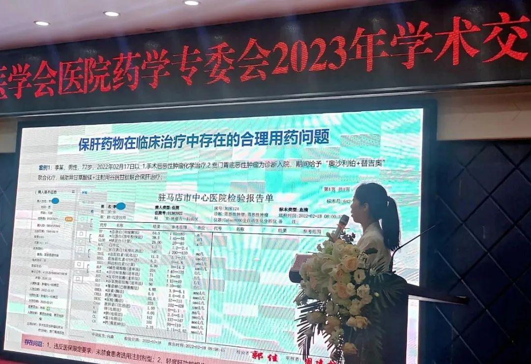 同时,来自市内驻马店市第二人民医院李小新主任做了《合理用药治疗药物监测-从认知到临床》、市第一人民医院陈永超药师做了《PIVAS退药管理的经验分享与体会》、市中心医院张思颖药师做了《DRG/DIP支付模式下临床药师参与临床》、市中医院张丹药师做了《中医三甲复评-中药药事管理部分》、平舆县人民医院文轲药师做了《基于降低我院内科抗菌药物使用强度实践-浅谈儿科抗菌药物合理使用》等学术分享。