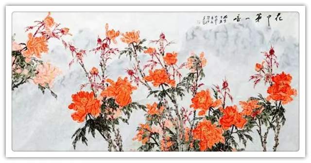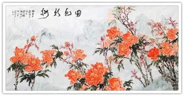 笔墨当随时代,丹青贵为抒情。杨育才先生的绘画作品,有追求“雅”的形态,比如《风华正茂》,有提升“趣”的印象,比如《花中第一香》,然后让雅趣导正人们的审美朝向,让牡丹一题成为见证国魂、和弦国脉的代言。让人一看他的作品就会激发出奋发向上的动力源,画以载道,畅志抒情。渍色牡丹不仅是艺术题材的创新,也是凝聚时代共识的文化图腾!