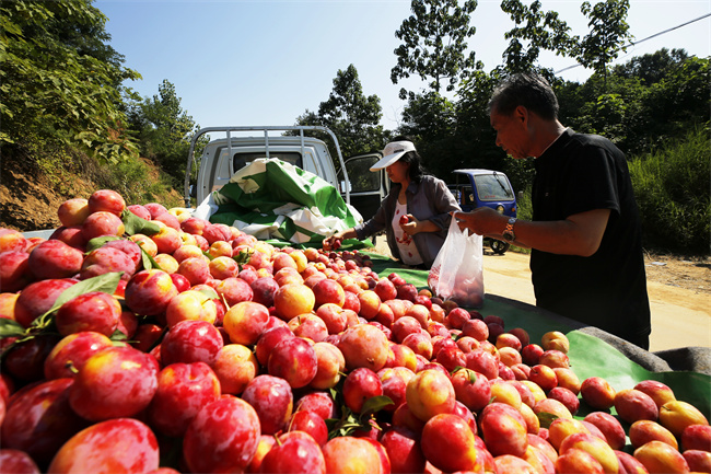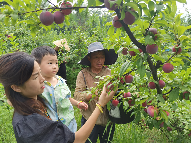 “这酸酸甜甜的李子太好吃了。”当天上午,在驿城区胡庙乡林业村一个李子园里,一名超市总经理前来采摘的开心地说。她的超市订单每年都销林业村种植水果几十万斤。