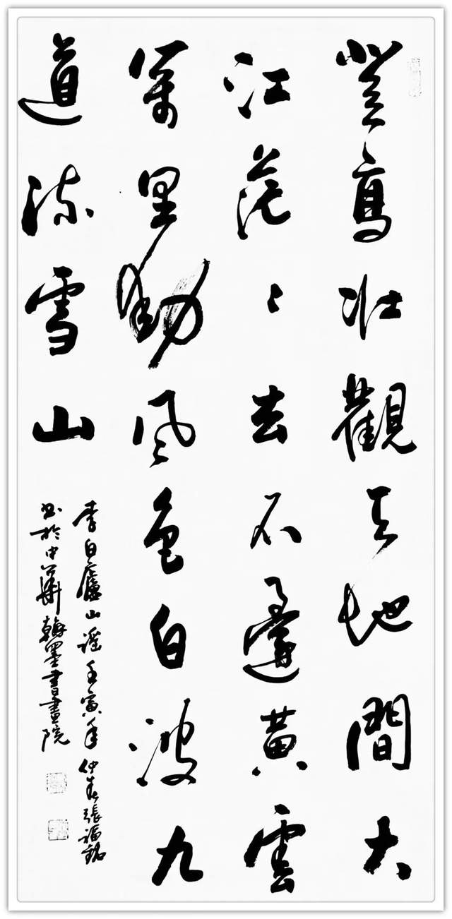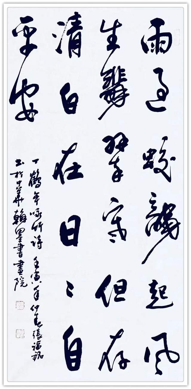 他画画有军队生活给予的气势磅礴,也有文人修养带来的儒雅清芬,写意梅兰竹菊,也可以盈满诗情画意。一作一品,耐于读,神于观,看得人赏心悦目,醉享无限。又有博涉多优,奋笔作书法的精气神。诸书皆成,尤其一笔行草写得瘦硬有精神。磨砺书法,观尽前人笔墨奇迹,见地深刻,可以在起笔落笔之际,把行草作品写得遂心应手,天质自然!