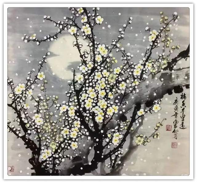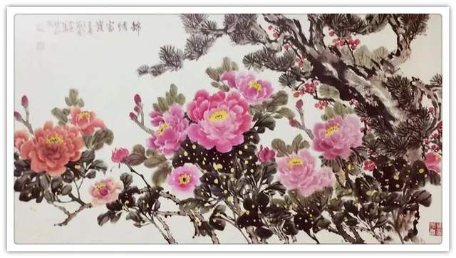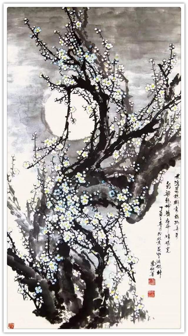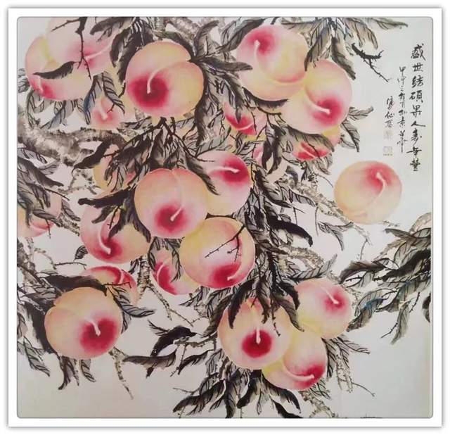 刘凤仙创作,意存笔先,画尽意在,豪放不显张扬,意境深远而不失恬淡清新,其梅花或艳如朝霞或白似瑞雪;寿桃或娇艳欲滴或灵秀芬芳,阵阵暗香仿佛跃出纸面,扑面而来,巧妙的将自然灵性点染画中,好似呼唤出了中国千年文化底蕴的深沉回声,诠释了中华民族古老艺术的深刻内涵。