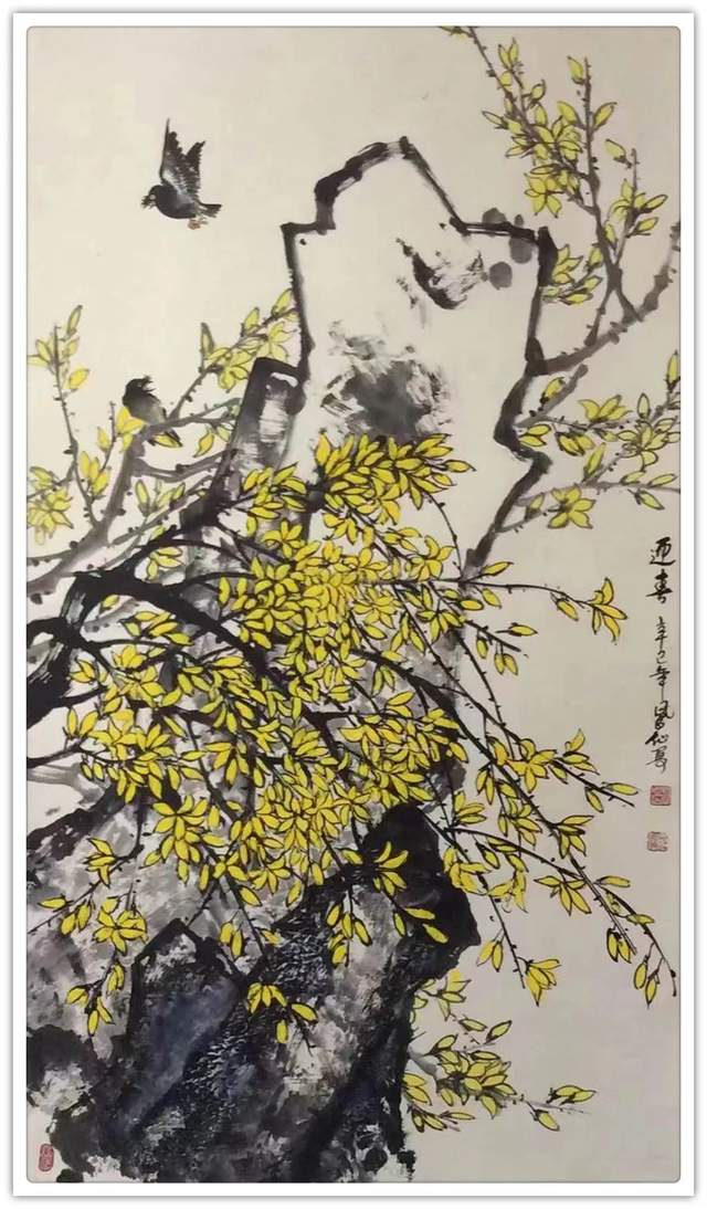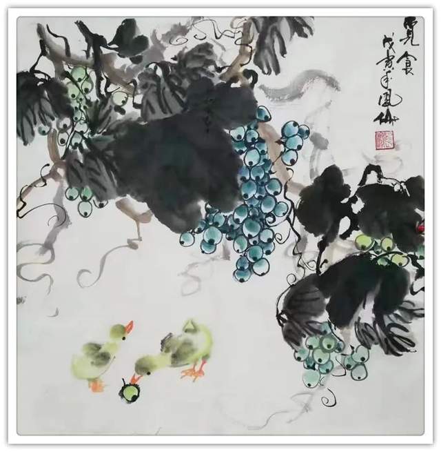 刘凤仙创作,师古而不泥古,继承不照搬,而是紧紧抓住自然界动植 物与人们生活、思想情感的某种联系给与强化表现。着重神、魂、韵的点画与描写,注意美与善的观念表达。用“移生动质"传达花鸟的生命力与其各不相同的特性,强调其“夺造化而移精神遐想"的怡情作用。通过对花鸟画的创作来表达自己的志趣、情操与精神生活,表达内在的思想与追求,缘物寄情,托物言志。