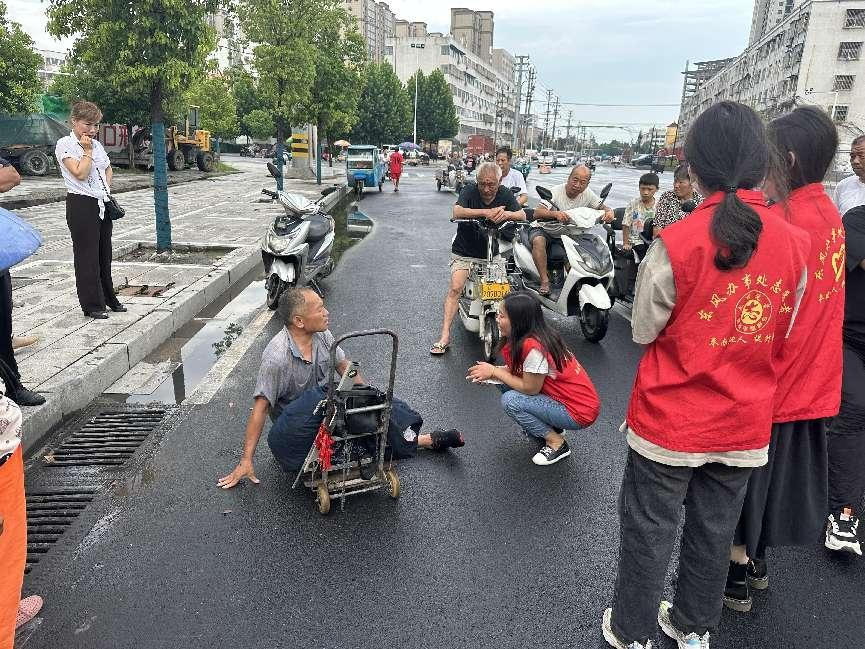 这感人的一幕发生在东风街道仓库路社区门前。7月26日,该社区支部书记夏艳红带领社区干部进行网格巡查时,在社区门前发现一位老人蹲坐在马路边,一脸愁容。她们随即上前询问情况,据老人介绍,他叫范朝振,家住安徽省临泉县宋集镇杨范村,一个月前来驿城打工,突发疾病,身上只剩30多元钱,正为回家的路费发愁。在了解核实老人的情况后,夏艳红一边抚慰老人情绪,一边毫不犹豫的拿出100元钱递给老人,帮助老人顺利踏上返乡路,并叮嘱老人一路小心,到家莫忘报个平安信。